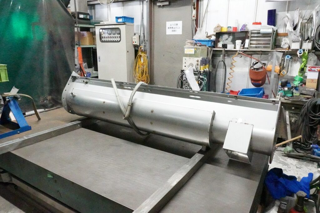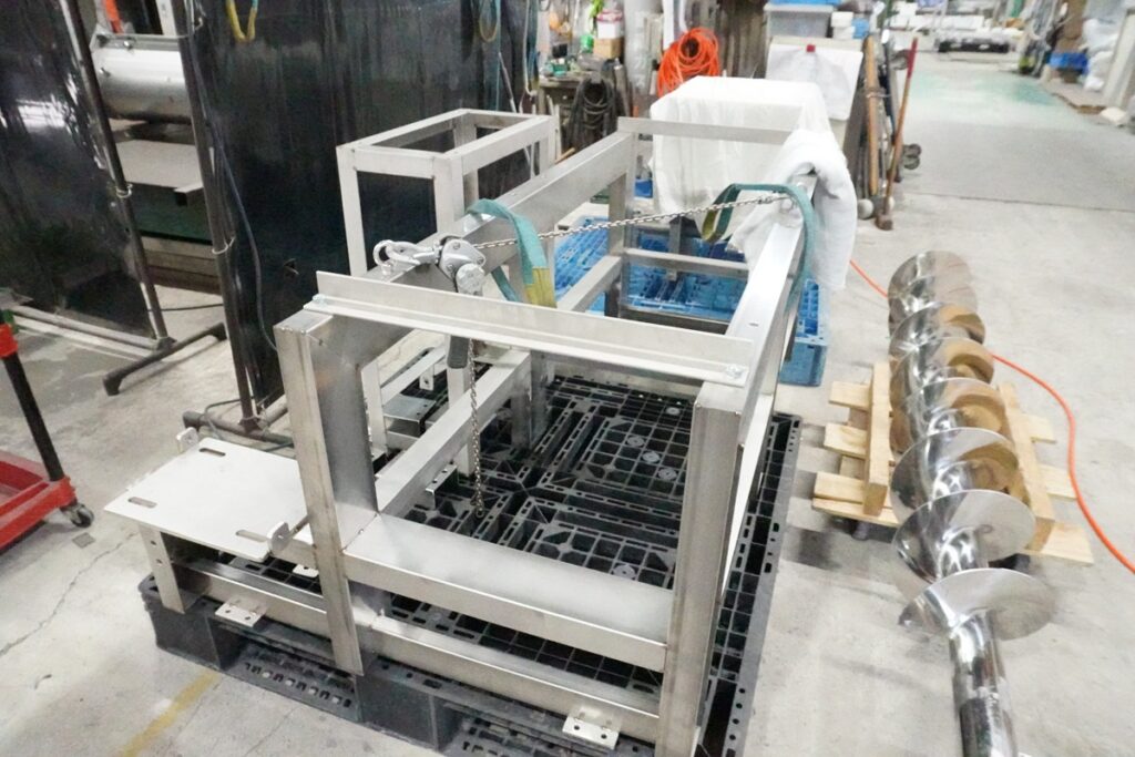 この架台の下にはスクリューフィーダーを設置する予定で、どちらもちょうど組立中の段階です。